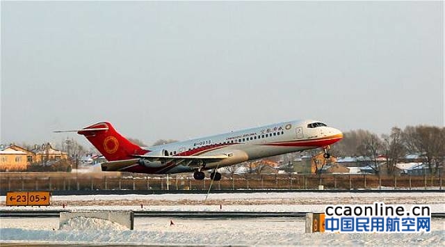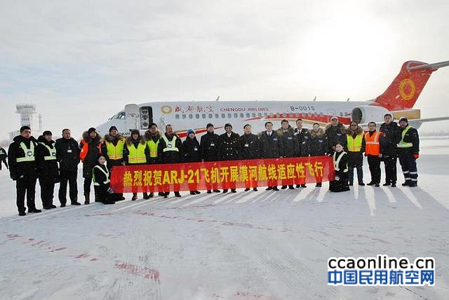 据悉,中国商飞108架机于11月25日转场哈尔滨,以哈尔滨太平机场为主基地,在哈尔滨、黑河、抚远、佳木斯、漠河、五大连池和长白山7个支线机场间开展航线适应性飞行,共执行19个飞行日,飞行60多个架次,累计飞行约61小时,部分地区最低气温低于-30℃。充分验证了在高寒条件下飞机、手册等的适应性,并对运行能力、运行支持保障能力进行模拟验证。其间,108架机还首次飞抵了祖国最北的漠河机场和最东的抚远机场。为ARJ21飞机正式投入黑龙江省运营积累了经验。