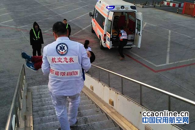 7时04分,石家庄机场接到空管部门通知,由北京飞往海口的航班上一名儿童突然呕吐、生命体征下降,决定紧急降落石家庄机场。石家庄机场立即通知急救中心并协调各保障单位安排做好应急救援准备工作,有关人员和急救车辆提前到达指定机位。7时23分,该航班备降石家庄机场,医务人员随即进入机舱对孩子进行紧急救治。据初步诊断,孩子体温超过39度,有抽搐现象,生命体征较为平稳。7时33分,医务人员用急救车通过绿色通道将孩子送至市区医院。