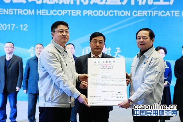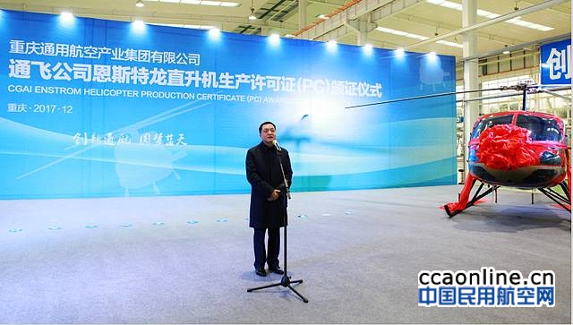 中国民用航空网讯:12月22日,在中国民用航空局、重庆市发改委等有关部门领导,以及众多媒体的见证下,中美双边适航协议签署后,国内首个直升机生产许可证(PC证)——恩斯特龙直升机生产许可证花落重庆通用航空产业集团有限公司(以下简称“重庆通航集团”),这标志着中美双边适航协议签署后,取得了通航领域整机制造的第一个实际成果,标志着重庆生产的直升机进入量产时代,并可以进行国际销售,标志着我国通航产业发展实现了历史性突破。