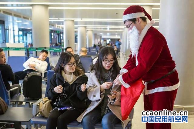 中国民用航空网讯:2017年12月25日圣诞节当天,上海虹桥浦东两大机场的候机楼内举办了一场以“相约圣诞、喜迎新年”为主题的旅客体验活动,“圣诞老人”来到旅客中间,派送礼物并热情提供送旅客登机服务,同时春秋航空地服人员还在机场候机大厅与值机大厅为旅客带来圣诞赞歌等精彩表演,使旅客感受到浓浓的节日气息。