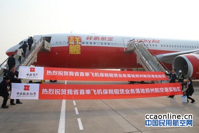 该架客机由中原航空融资租赁公司为祥鹏航空公司引进的。此次飞机租赁业务采取的是保税租赁模式,是河南省首次以海关特殊监管区域SPV方式完成的第一单飞机租赁业务,标志着河南省飞机保税租赁业务实现零的突破,这在我国中西部还是第一次。
