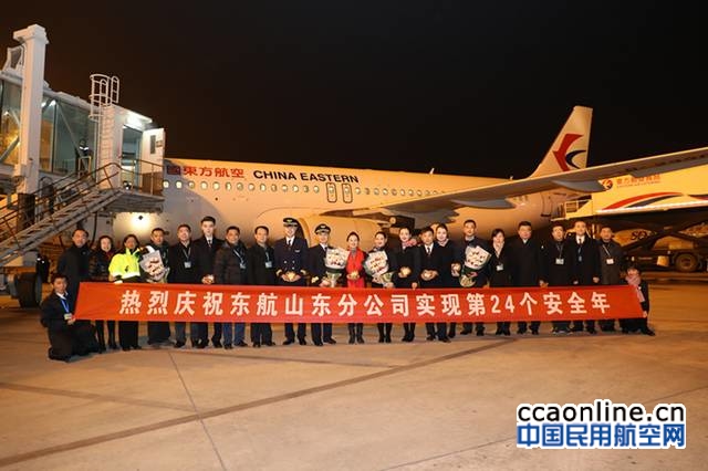 中国民用航空网讯:2017年12月31日,当东航山东分公司2017年最后一个航班平稳降落在青岛机场停机坪时,分公司圆满实现第24个安全年,分公司领导班子成员以及相关领导一起在青岛和济南、烟台三地迎接了远航归来的机组成员。