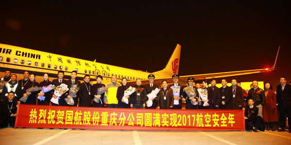 随着重庆CA4388(三亚回重庆)、广州CA4024 (宁波-广州) 、北京CA1410(重庆到北京)航班的平稳落地,标志着重庆分公司圆满实现了2017全年的航空安全,创造了持续安全飞行42年的新纪录。
