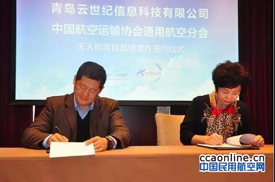 中国民用航空网讯:12月28日中国航协通航分会与青岛云世纪信息科技有限公司在北京签署无人机项目合作协议。