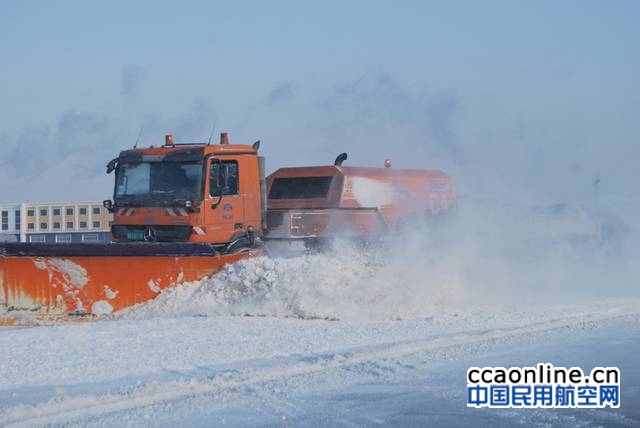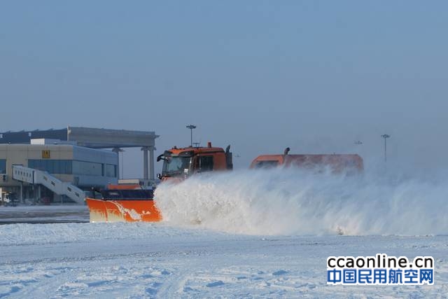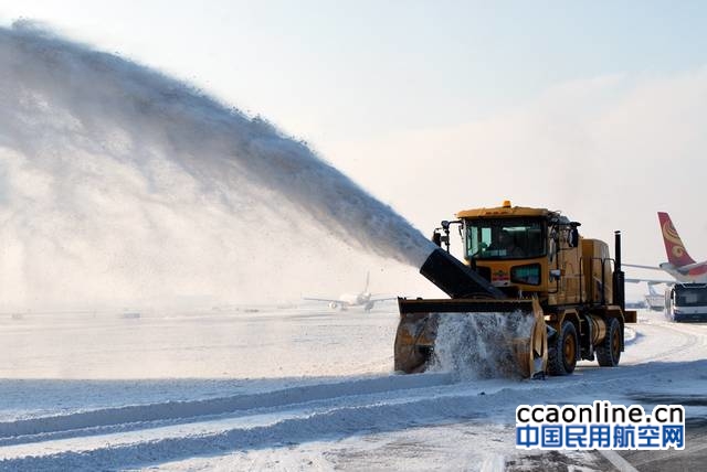 同时,哈尔滨机场机务人员出动除冰车对飞机实施除冰作业,全天共实施除冰作业100余架次。