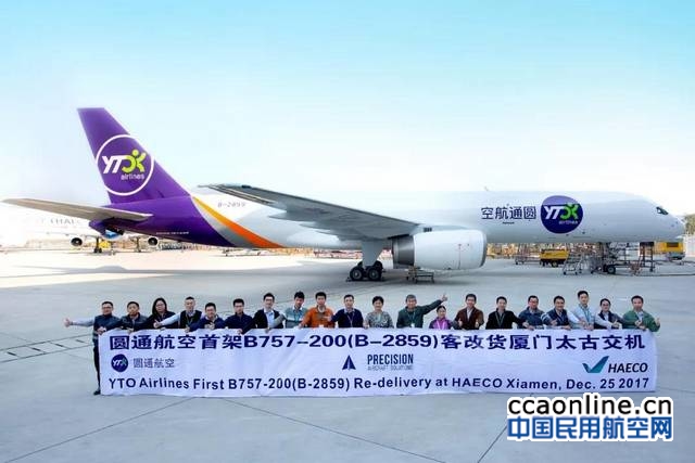 中国民用航空网讯:2017年12月25日,厦门太古飞机工程有限公司 (厦门太古)正式向圆通航空交付首架波音757-200客改货飞机。 这架飞机由厦门太古与其补充型号合格证伙伴Precision Aircraft Solutions (Precision)合作改装。 厦门太古与Precision自2010年合作以来,至今已完成了18架波音757-200的客改货项目。