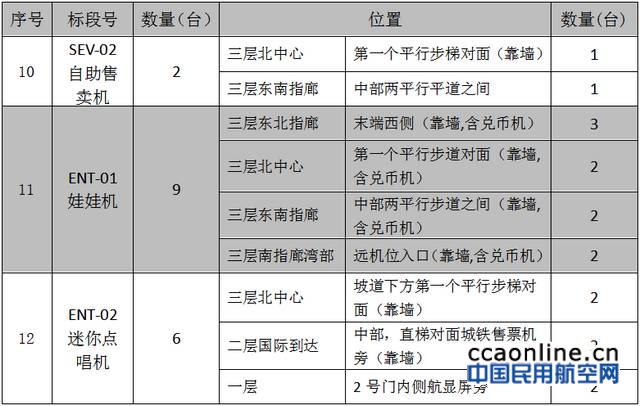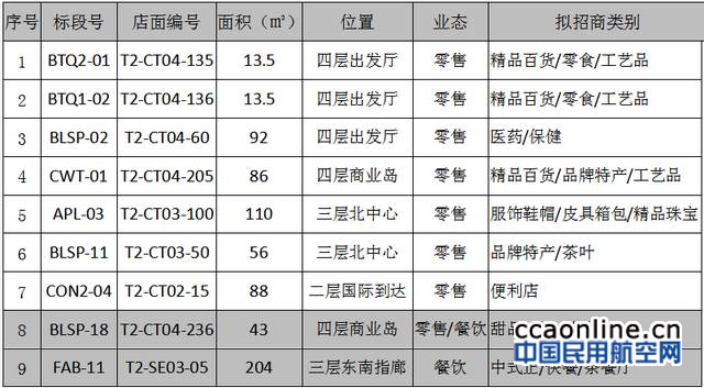3、招商项目情况:此次招商共计12个标段(9个店面标段、3个非店面标段),面积约706平米,分布于除西北指廊(国际候机区)以外的各区域。