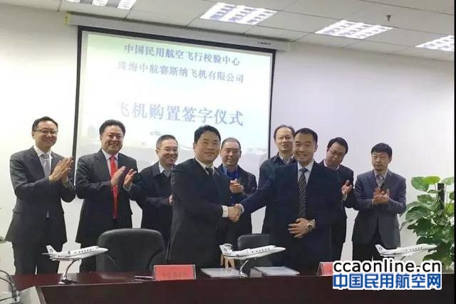 中国民用航空网讯:2018年1月12日,珠海中航赛斯纳飞机有限公司与中国民航飞行校验中心(简称:校飞中心)签订采购合同,订单包含3架赛斯纳奖状560 XLS+飞机,未来将主要用于飞行校验任务。三架飞机预计将于今年完成交付。