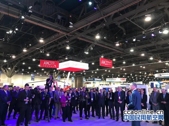 Heli-Expo2018展会现场展示意大利莱奥纳多直升机AW169