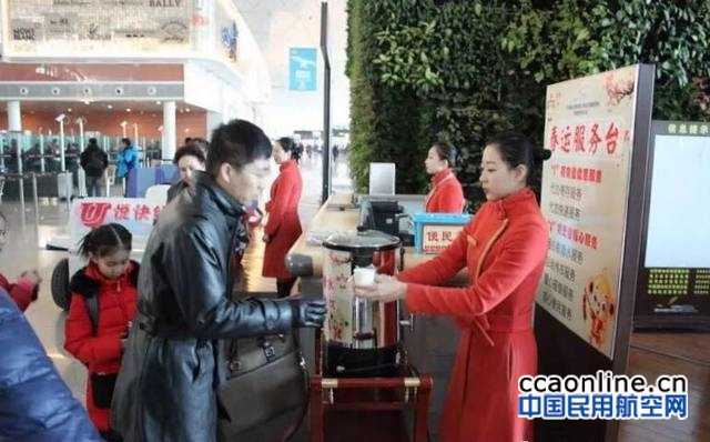 为了更好地为出行旅客提供贴心服务,U悦天使志愿者们在大问号、安检内问询台为旅客免费提供姜糖水热饮服务。还开展了爱心冬衣寄存服务。U悦天使志愿者在T3航站楼二楼行李寄存处,为从沈阳出发到三亚、海口、普吉岛三条航线的旅客提供爱心冬衣寄存优惠服务,极大方便了南行的旅客。考虑到冬季温度较低,电瓶车行驶时,车上人员会感觉较为寒冷,U悦天使志愿者为乘坐U悦快线旅客提供贴心的冬衣和爱心坐垫,一路将旅客温暖呵护送至登机口。还为一些身体不适、航班延误需要长时间等待的旅客提供免费毛毯借用服务。为了避免旅客因冷热交替而造成的雾气影响视线,在出港大厅门口,U悦天使志愿者主动为带眼镜的旅客提供擦拭眼镜服务,以方便旅客出行寻找柜台。在问询处U悦天使志愿者为旅客提供便民箱服务。在便民箱中新增加婴儿纸尿裤、湿纸巾,为带婴儿乘机的旅客提供了贴心帮助、带来了极大便利。与此同时,为了方便旅客乘车,将B停车楼负一层手推车右侧临时变为旅客乘降区,志愿者主动为旅客做出引导指示,方便了旅客乘车需要。