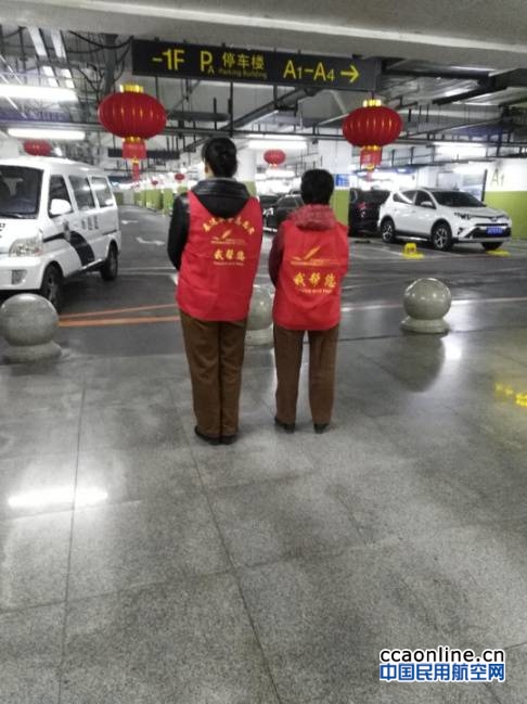 为了维护航站楼内的秩序,为旅客出行提供舒心畅行的环境。春运期间加强对航站楼内秩序及不文明行为的维护与劝阻,志愿者身穿“我帮你”的红色马甲在航站楼内对脱鞋、躺卧、吸烟及坐踏栏杆等不文明行为的旅客进行及时劝阻,以维护良好的乘机环境。同时,在停车场内志愿者佩戴红色袖标,维护公共秩序,每位巡查员、引导员在巡视过程中严格落实首问责任制,耐心为旅客指明方向,为需要帮助的旅客提供着无偿帮助。