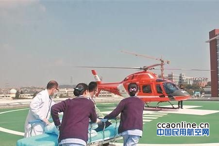 直升机空中医疗救援也被称作“空中120”,是指将直升机应用于医疗救援工作中,能更快到达事发地,对病人进行简单处理后运送至最近的医院进行救治。这是目前国际上最高效的急救方式,同时也能更便捷地开展危重、疑难疾病由县、市级向省级、专科医院的转诊业务。