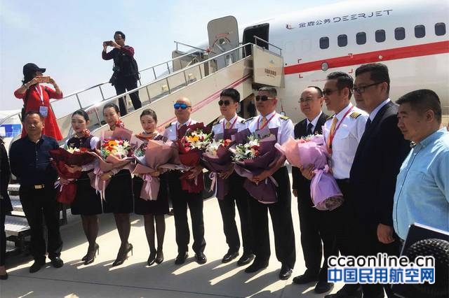 该架波音 737BBJ 公务机从北京起飞,历经一个半小时的飞行优雅降落上街机场。飞机落地后,一只由 100 多名机场人员、80 多家媒体的队伍为机组人员举行了隆重而温馨的接机仪式。