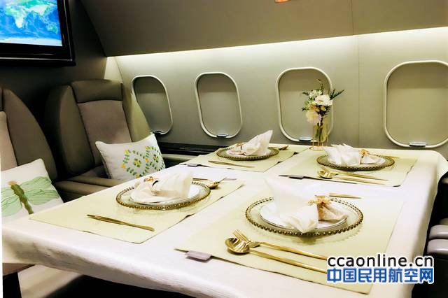 该架波音 737BBJ 公务机将以静态展形式参展,为迎合春季主题,金鹿公务对客舱进行了以“春天的遐想”为主题的绿色调布置,用一抹春意向来访嘉宾展示了来自于海航通航旗下金鹿公务的艺术航空风范。