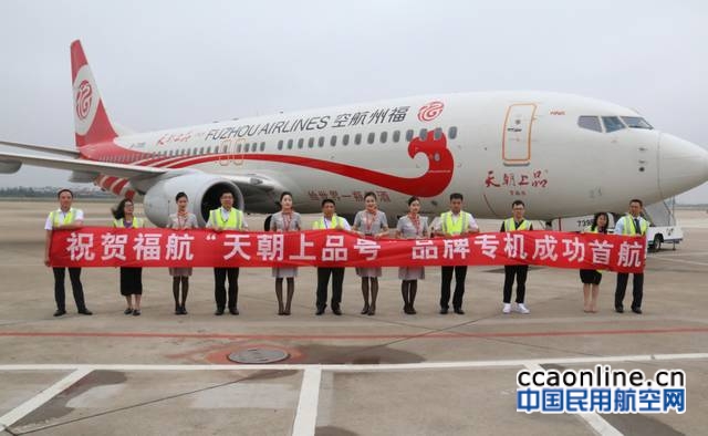 中国民用航空网通讯员陈康讯:2018年5月31日16:00时,福州航空首架品牌专机“天朝上品”号首航仪式在福州长乐国际机场举行,这是福州航空开航以来的首架跨界合作品牌专机。