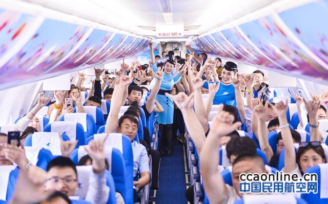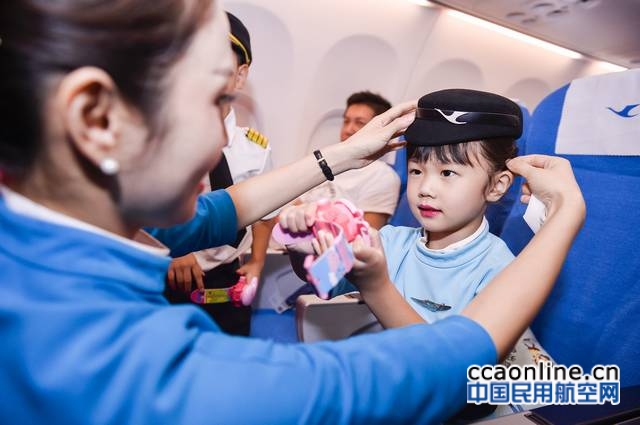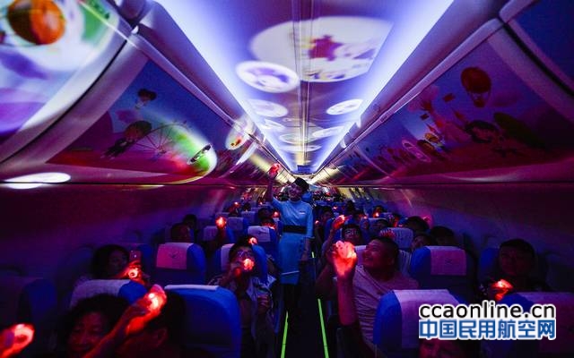 中国民用航空网通讯员张玮玲、贺晟讯:“一个一个梦飞出了天窗,一次一次想穿梭旧时光。插上竹蜻蜓张开了翅膀,飞到任何想要去的地方……”欢乐的节奏在万米高空唱响,152位来自不同地方、不同年龄的旅客随着机组挥舞手中写着童年梦想的纸玩具,一同逐梦飞翔,对话小时候。