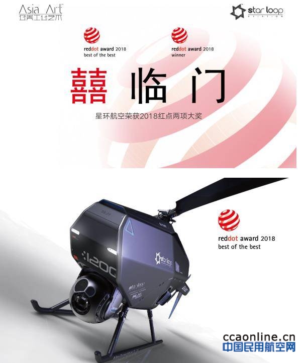近期,星环航空在研产品SLH-1200P无人直升机,因其出色的工业设计及技术性能,与战略合作伙伴亚美森工业设计(Asia-Art Design)一起,一举斩获2018红点最佳设计奖(Reddot: Best of the Best )。