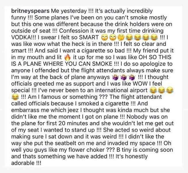 据美媒报道,近日,知名女歌手小甜甜布兰妮(Britney Spears)日前在30000英尺高空的私人飞机上做出危险举动,违反联邦航空法规,导致航班降落时遭警方拦截约谈。