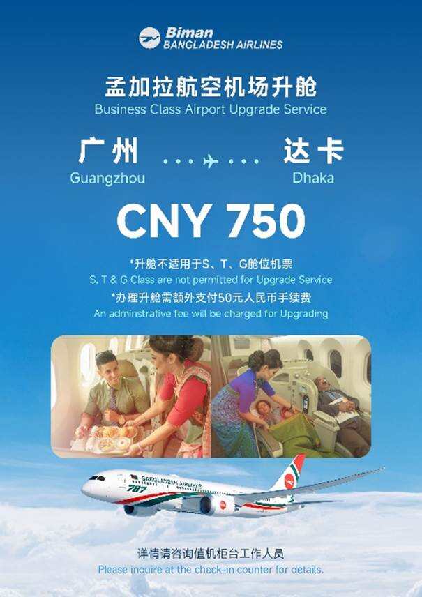 值得注意的是,该升舱服务仅适用于孟加拉航空(BG)广州出发至达卡的航线。