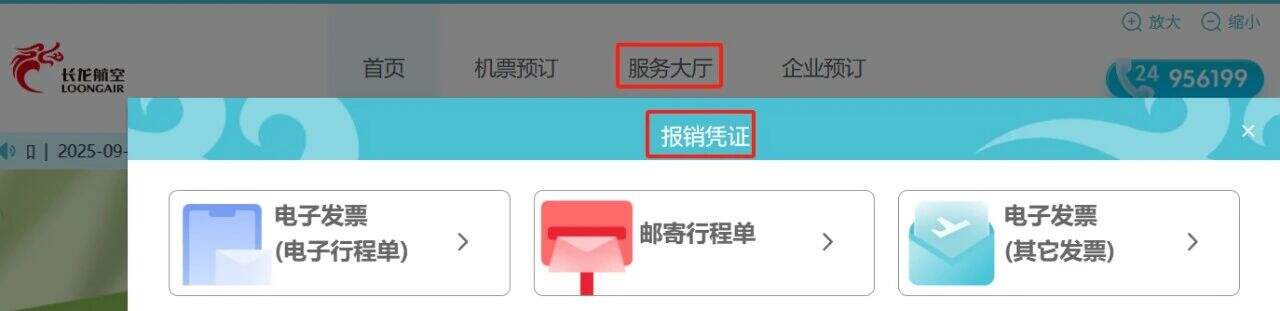 1. 长龙航空官网-服务大厅-抵达服务-报销凭证-电子发票(电子行程单);