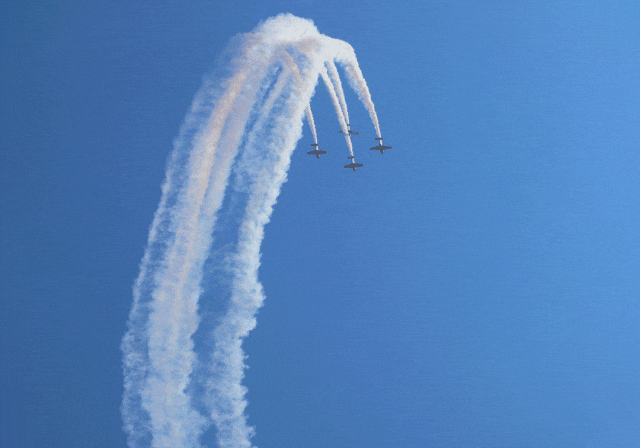 落叶飘、低空倒飞、低空刀锋侧飞、空中画心、四机开花、急上升翻滚倒转……都是该飞行表演队的经典特技动作,每一个动作都直击肾上腺素!