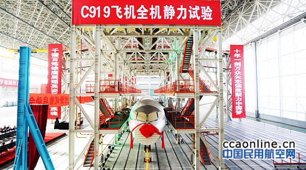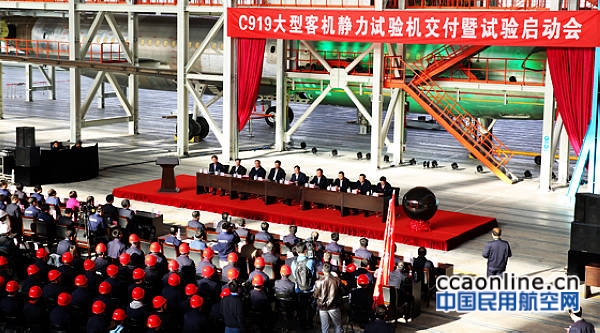 中国民用航空网讯:2016年4月11日,中国商飞C919大型客机全机静力试验机(01架机)交付暨试验启动会在中国飞机强度研究所上海分部召开,标志着C919大型客机静力试验正式启动。中国商飞公司董事长金壮龙,总经理贺东风,中航工业集团副总经理李本正,民航上海航空器适航审定中心主任顾新,中国商飞公司副总经理吴光辉出席启动会。