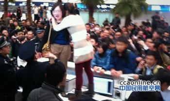 经了解,5月1日19:50分许,海口美兰机场警方接到川航驻海口代办的报警,称有3名旅客因琐事与川航3U8182航班机组人员在16号登机口纠缠不休,阻拦乘务员继续执飞下一个航班,影响航班起飞准备工作。机场派出所民警立即出警,赶赴事发地,了解案情,努力劝解和恢复16号登机口旅客登机秩序。