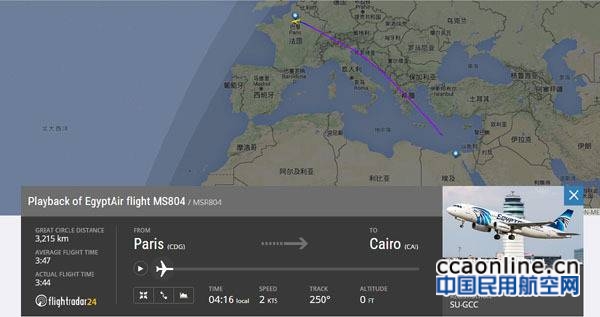 希腊航空部门则通知埃及称,客机在进入该国领空20分钟后消失。