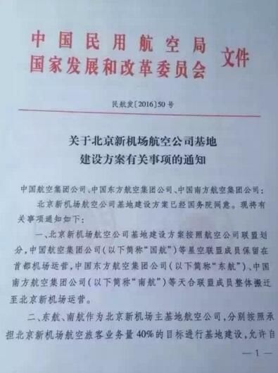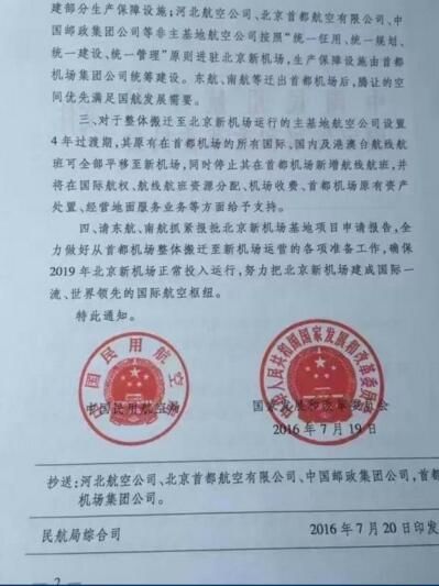 据透露,目前按照方案要求,东航、南航将抓紧报批北京新机场基地项目申请报告,全力做好从首都机场整体搬迁至新机场运营的各项准备工作,确保2019年北京新机场正常投入运行,努力把北京新机场建成国际一流、世界领先的国际航空枢纽。(新华网 钱春弦)
