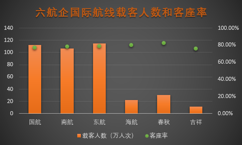 9月份六航企国际航线载客人数和客座率