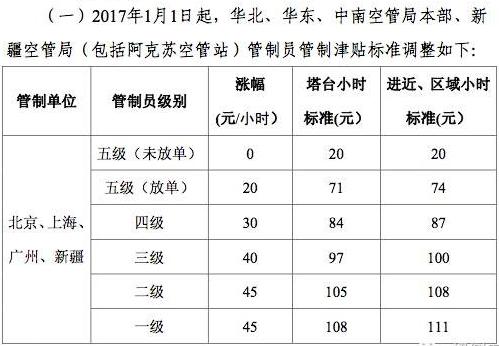 日前有爆料指出,华北、华东、中南空管局本部、新疆空管局的一级、二级、三级、四级和五级(放单)管制员津贴标准涨幅分别为45元/小时、45元/小时、40元/小时、30元/小时和20元/小时。其他单位的一级、二级、三级、四级和五级(放单)管制员管制津贴标准分别提高25元/小时、25元/小时、20元/小时、15元/小时和10元/小时。