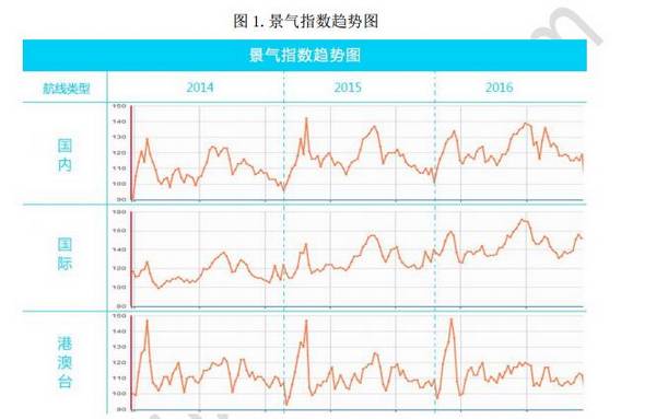 - 2016年民航全市场景气指数稳步齐升:国内航线123,国际航线145,港澳台航线113。
