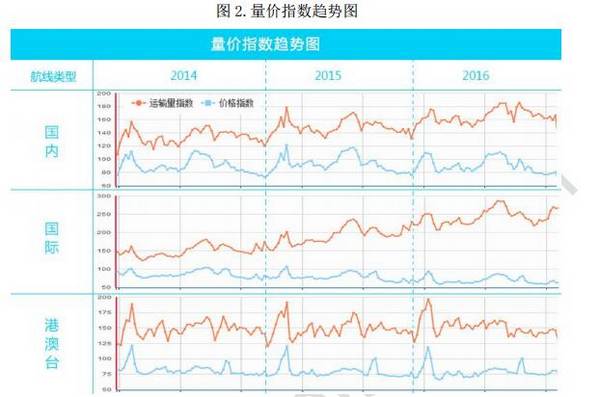 - 2016年民航市场运输量指数[2]整体持续稳步上升,价格指数[3]在国际航线市场出持续下滑,但降幅逐渐放缓。