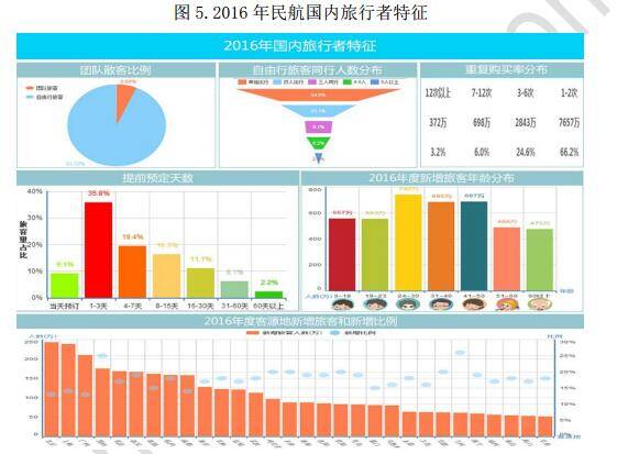 - 国内航线提前预订天数[7]在经历了2015年的短期预订比例缩减后,在2016年提前1-3天预订的旅客比例再次出现回升,而提前1周至1个月预订的旅客比例均有下降。