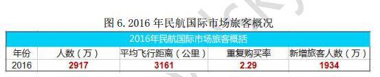 - 如图6所示,2016年民航国际市场旅客规模2917万人,同比增幅18.6%低于此前两年(19%、21.7%)。平均飞行距离3161公里,平均航程保持增长。