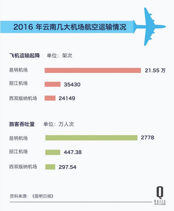 根据云南当地媒体报道2012 年底数据显示,云南机场集团下属的全省 10 多个机场中,只有昆明、丽江和西双版纳机场处于盈利状态,其他都在亏损。