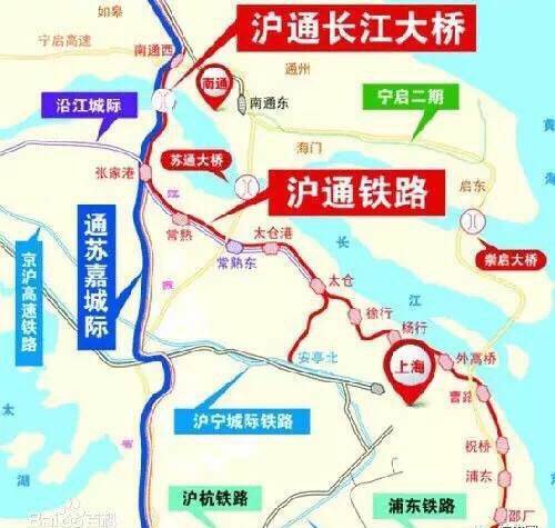 沪通铁路长江大桥是沪通铁路的关键工程,2014年3月1日,沪通铁路长江大桥正式开工,建设工期为5年半。预计2019年9月1日完工。