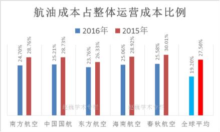 •中国航空公司航油成本占比连续两年高于全球平均水平。