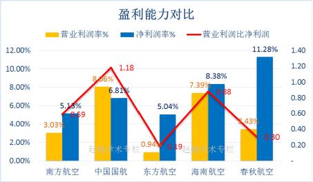 •国航营业利润率最高,而且只有国航营业利润率高于净利润率。航空主业经营能力最强。