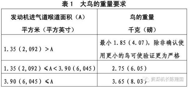 请注意对比发动机测试用的鸟是以千克为单位。
