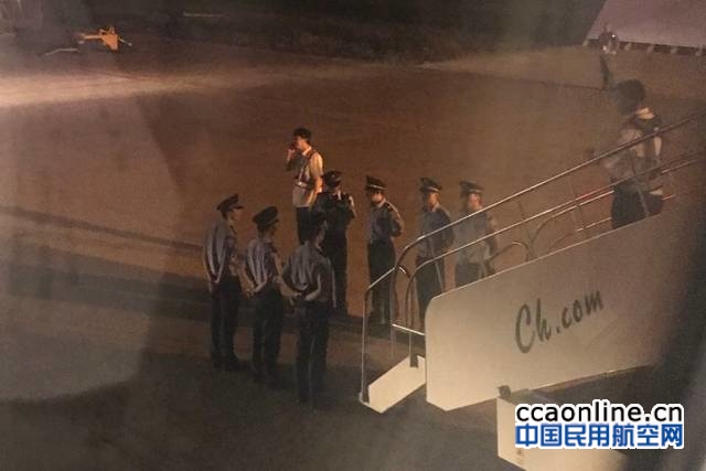 飞机于21:38落地浦东机场后,根据应急处置程序,立即进行了清仓和排查,确定排除有炸弹的可能性,经查该乘客为香港人,已被移交公安部门处理。