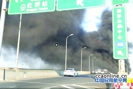 9月5日,网上出现一段虹桥机场周边高架道路浓烟滚滚的视频,是沪渝高速邻近的一蔬菜农副产品交易市场发生火灾(已被扑灭,无人伤)的情形。上海网警在网上公开巡查执法时发现,有网民利用该视频造谣称“虹桥机场,飞机坠落”。对此,上海网警迅速开展核查。