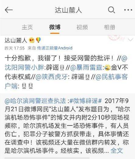 据了解,夏某今年36岁,户籍地为牡丹江,在哈市工作,为新浪微博知名大V博主,其新浪注册号达山麓人有6.9万粉丝。夏某称,9月21日,他收到朋友发来的视频,但没有任何文字介绍,他在没有进行核实的情况下,判断视频内容是机场发生了恐怖事件,但已被警方及时化解,于是将视频添加了文字发布在自己的微博账号内。该内容迅速被大量转发,造成广泛影响。期间有网友提醒他未经核实就发布重大事件可能属于造谣,于是在信息发出1小时后夏某删除了微博,并随后贴出了致歉信息,澄清了事实。