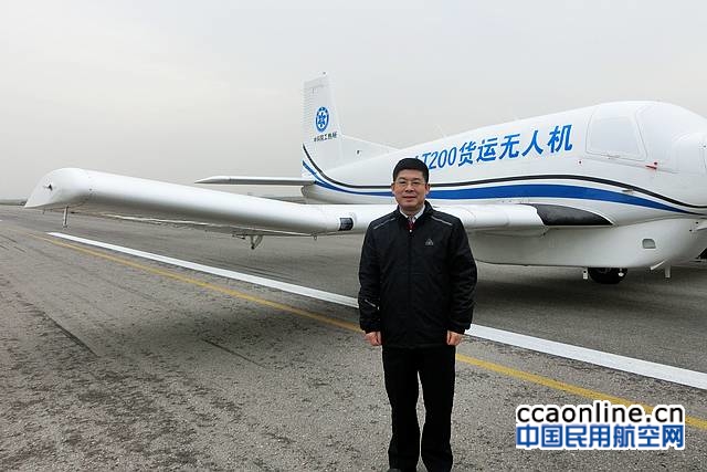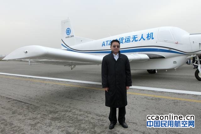 北京通航总经理凌庄怀与AT200货运无人机合影 摄影:安利国