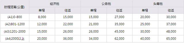 表3:某航中国大陆地区航线奖励机票兑换标准表 (单位:公里)