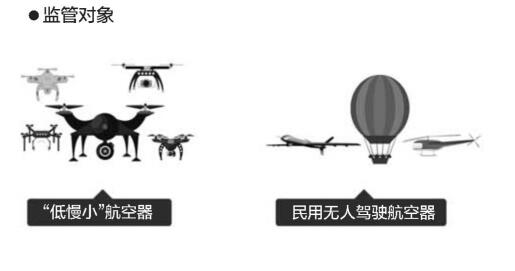 监管对象基本分为两类,民用无人驾驶航空器和“低慢小”航空器。