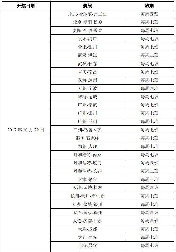 2017年10月,本集团引进两架客机,分别为一架A319飞机和一架B737-700飞机。退出两架B737-800飞机。截止2017年10月底,本集团合计运营643架飞机,其中自有飞机253架,融资租赁185架,经营租赁205架。