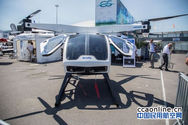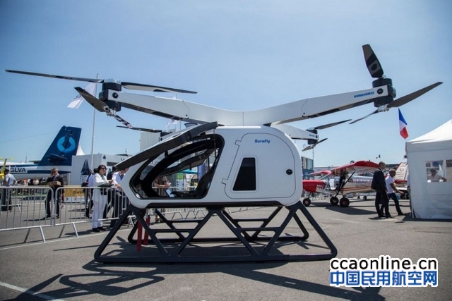 实际上,SureFly的这种设计看起来跟四旋翼无人机DJI Phantom非常相像,只不过它需要人类驾驶员坐在里面操控才能飞起来。