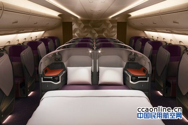 获SKYTRAX 2016年“世界最佳公务舱”奖的卡塔尔航空,于今年3月在空客A380客机上推出了一款具有革命性的公务舱套房产品。这种公务舱套房不但开了航空运输史上公务舱配置双人床的先河,还能够通过可调节的私密隔板和电视屏幕,实现前后两排4个人面对面进行交流的“4人派对”式座椅布局。