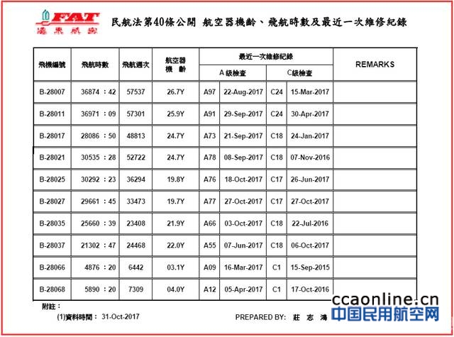 航空圈查询远东航空官方网站公布的数据,截至2017年10月31日,远东航空8架麦道(MD)飞机平均机龄超过23年,最老的一架机龄已经为26.7年,最新的也即将20年。另外,远东航空现有8架麦道飞机,正常情况机队至少要有17到18台引擎,但远航只有14台,也就是只要有一台引擎故障,只有等引擎修好飞机才能再起飞。
